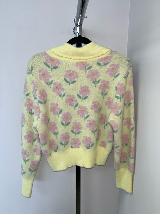 Size L Zara Yellow Pink Floral Ladies Long Slvd Top